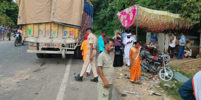 गोपालगंज (बिहार)। मंगलवार को थावे थानाक्षेत्र के इटवा पुल के समीप बड़ा सड़क हादसा हो गया। दुर्गा मंदिर में दर्शन कर घर लौट रहे श्रद्धालुओं की बाइक एक तेज रफ्तार ट्रक से जा टकराई। इस हादसे में बाइक सवार एक युवती की मौके पर ही मौत हो गई, जबकि दो अन्य गंभीर रूप से घायल हो गए।