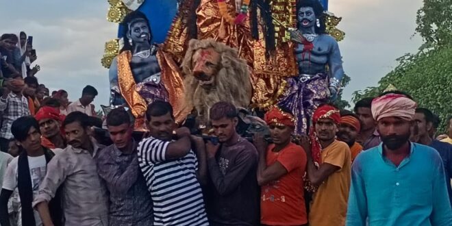 निघासन, खीरी – थाना सिंगाही क्षेत्र के शीतलापुर में बृहस्पतिवार को नव दुर्गा मूर्ति का विसर्जन समारोह धूमधाम से आयोजित किया गया। इस अवसर पर बड़ी संख्या में ग्रामीण उपस्थित रहे। श्रद्धालुओं ने हर्षोल्लास के साथ दुर्गा पंडाल से नाचते-गाते हुए खैरीगढ़ सरयू नदी तट तक यात्रा निकाली।